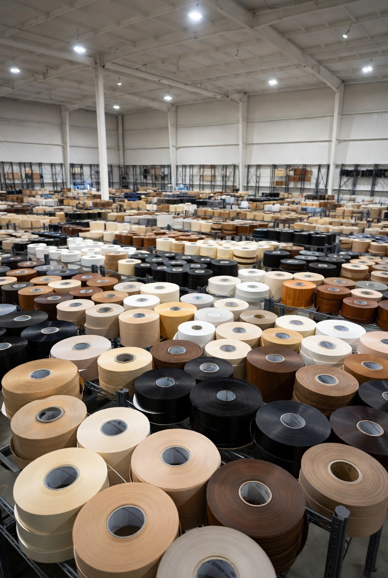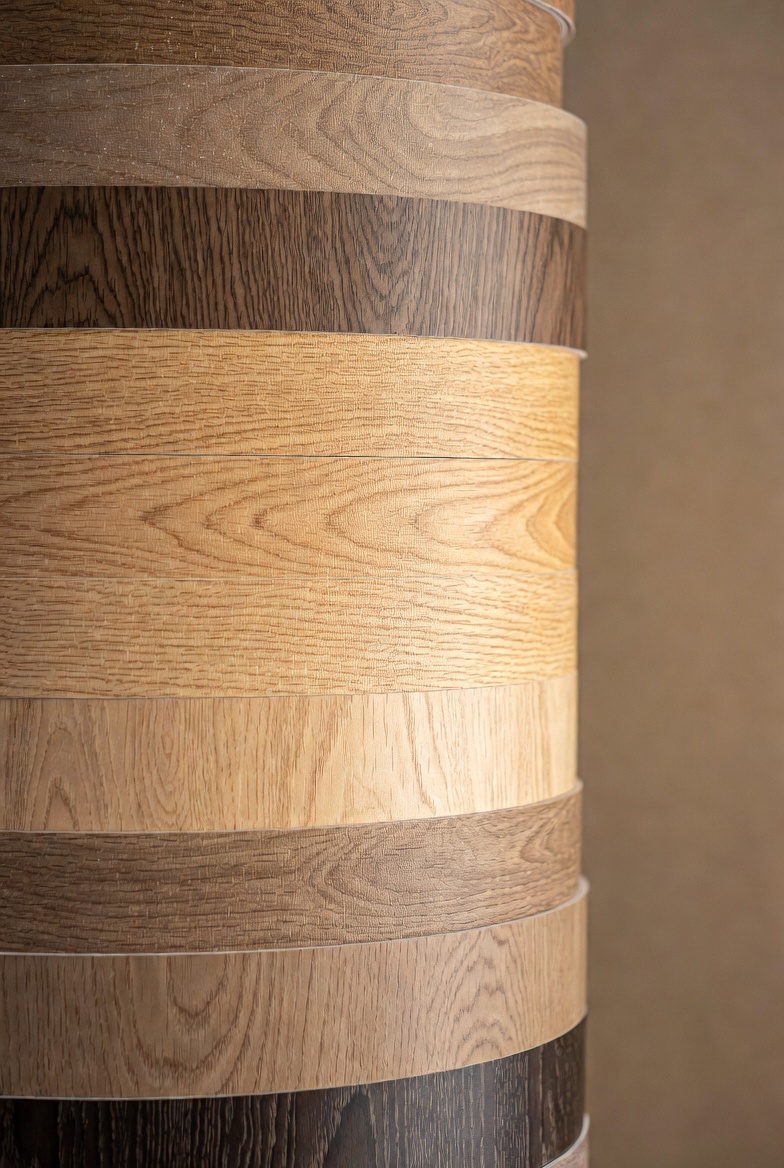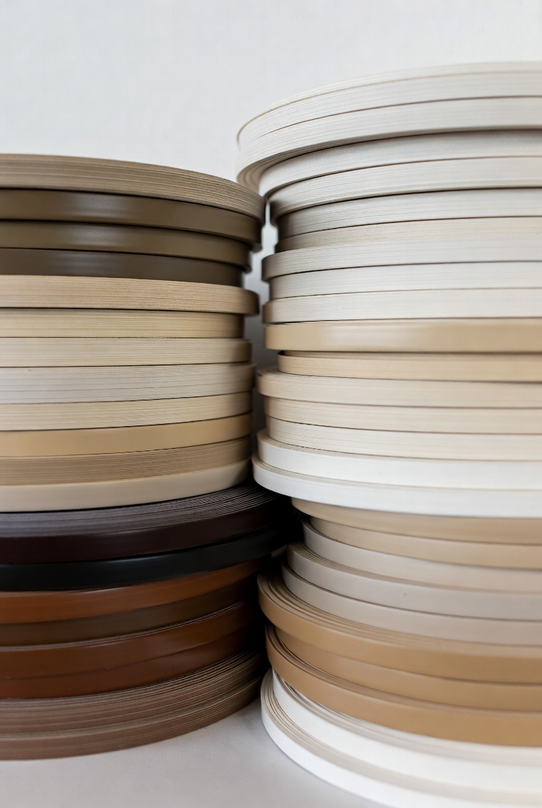 Any possible custom design and colour matching across 16mm–60mm widths, 0.45mm–3.00mm thickness, and 30m–330m roll lengths. UV and infrared cured edgebands engineered for high impact strength and scratch resistance. Inline printing for superior bonding — never post-printed tapes. Backed by a 100% quality guarantee, enabled by fully in-house compound formulation and extrusion for complete material control.