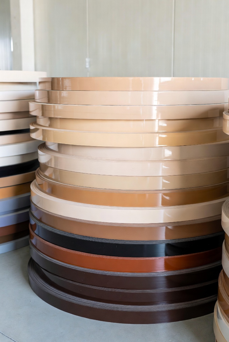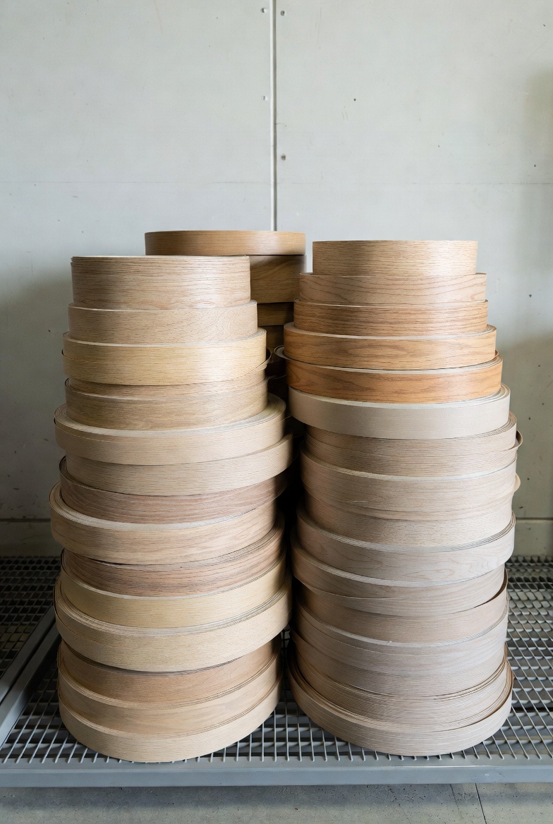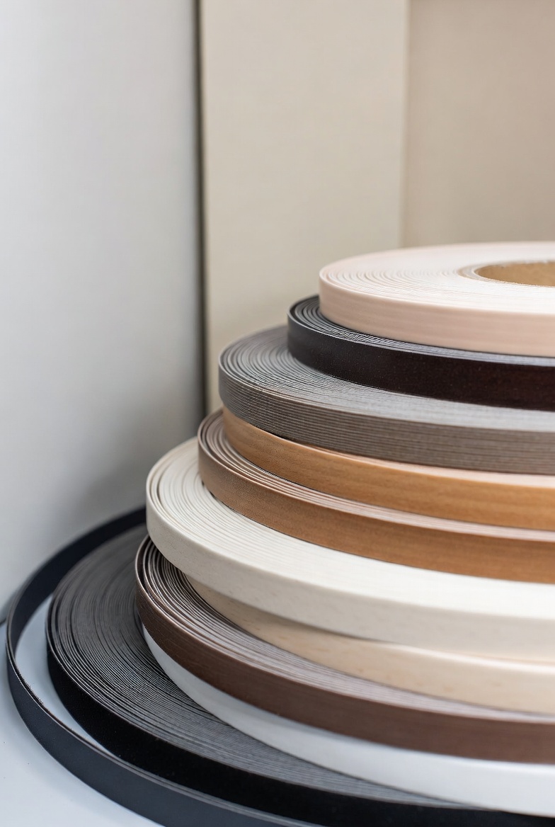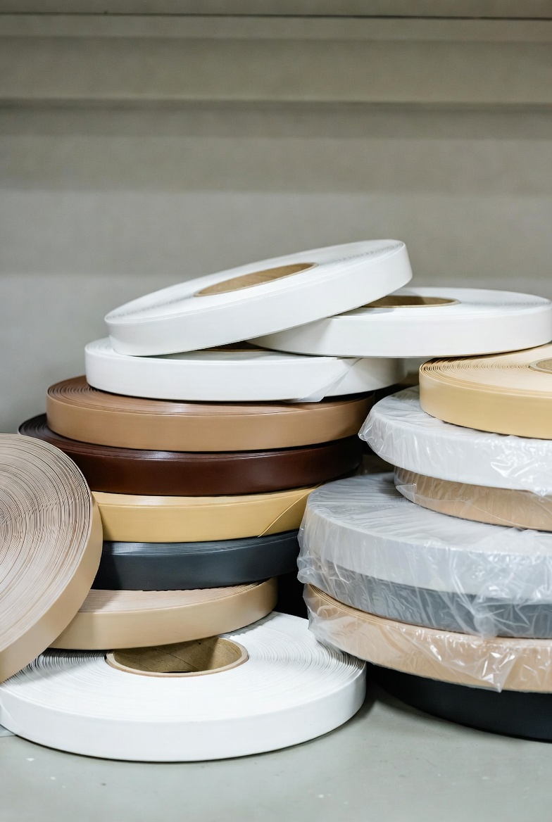 Any possible custom design and colour matching across 16mm–60mm widths, 0.45mm–3.00mm thickness, and 30m–330m roll lengths. UV and infrared cured edgebands engineered for high impact strength and scratch resistance. Inline printing for superior bonding — never post-printed tapes. Backed by a 100% quality guarantee, enabled by fully in-house compound formulation and extrusion for complete material control.